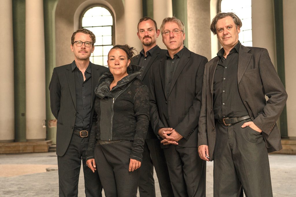 Das solistisch besetzte Ensemble agiert zumeist in einer Stammbesetzung aus fünf Sänger:innen. Von links nach rechts: Werner Blau – Bass, Philipp Cieslewicz – Altus, Winnie Brückner – Sopran, Burkard Wehner – Bariton und musikalischer Leiter und Tobias Hagge – Bass. Die Besetzung ist je nach Programm variabel von 3 bis 10 Sänger:innen.